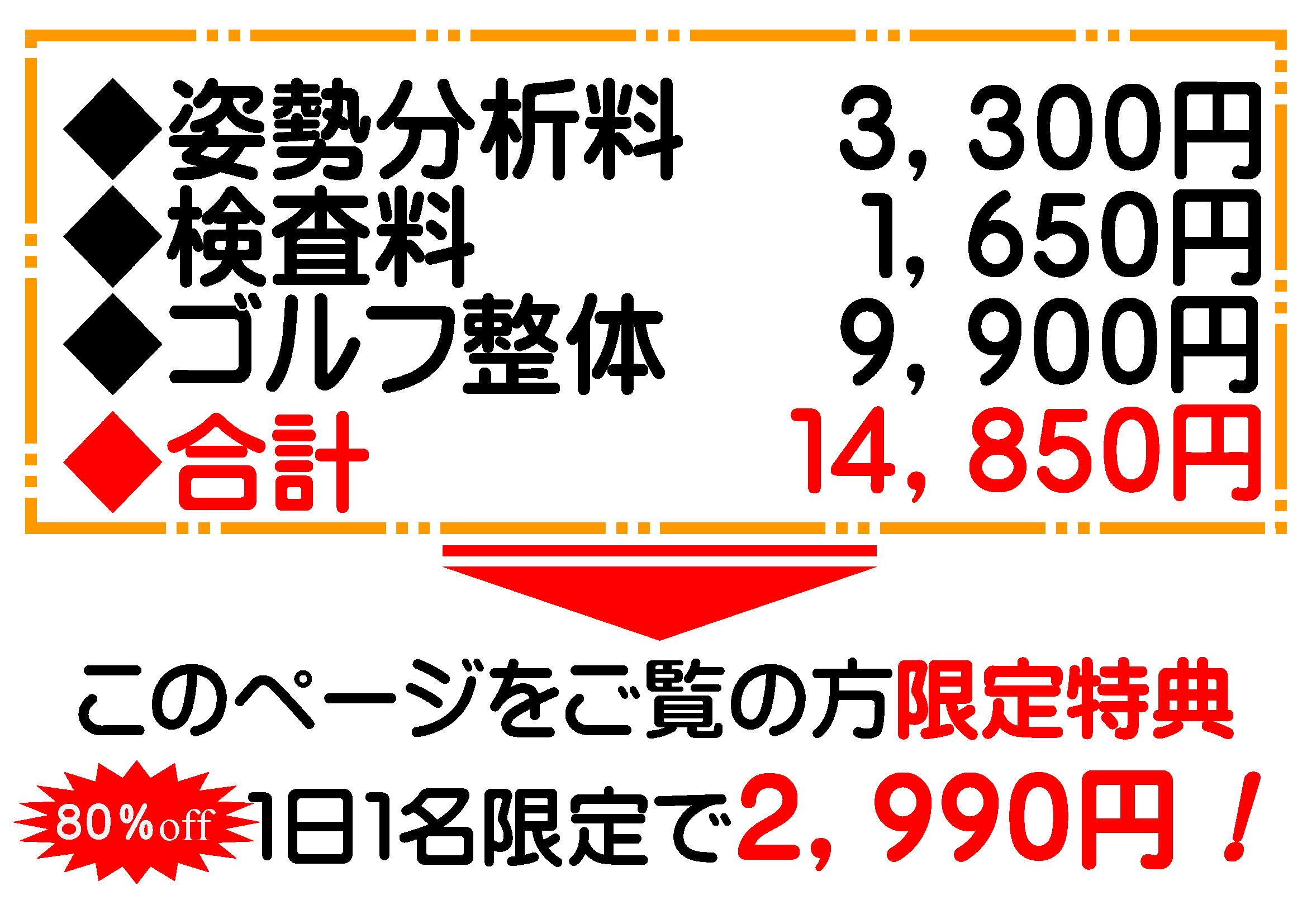 そして、今ならさらに『ゴルフ整体コース』受診の方に限り飛距離を15ヤード伸ばす為のプロジェクト、ゴムチューブを使った『パワーアップ・エクササイズ』の動画を無料でプレゼントいたします。